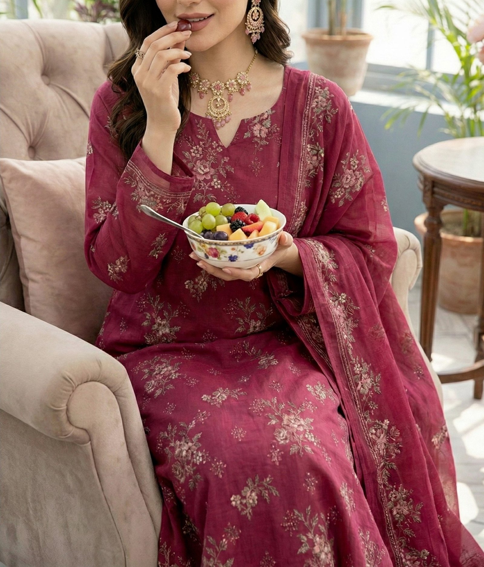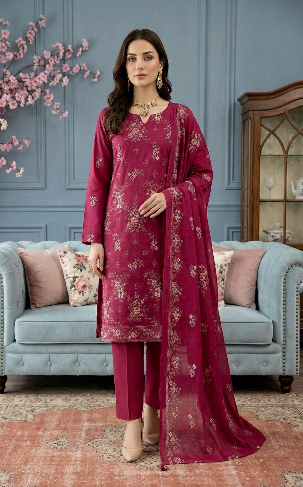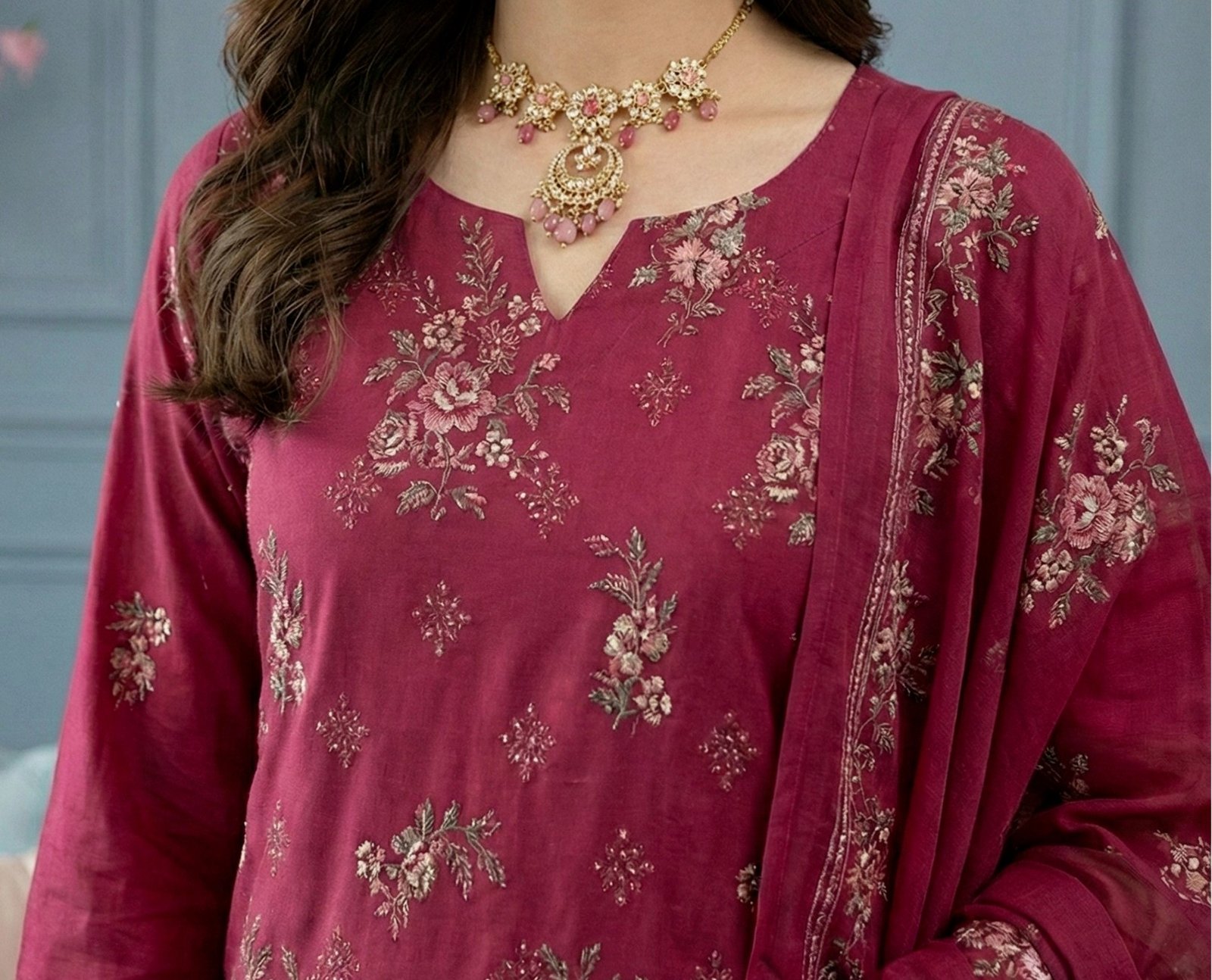 Lawn heavy embroidered D17